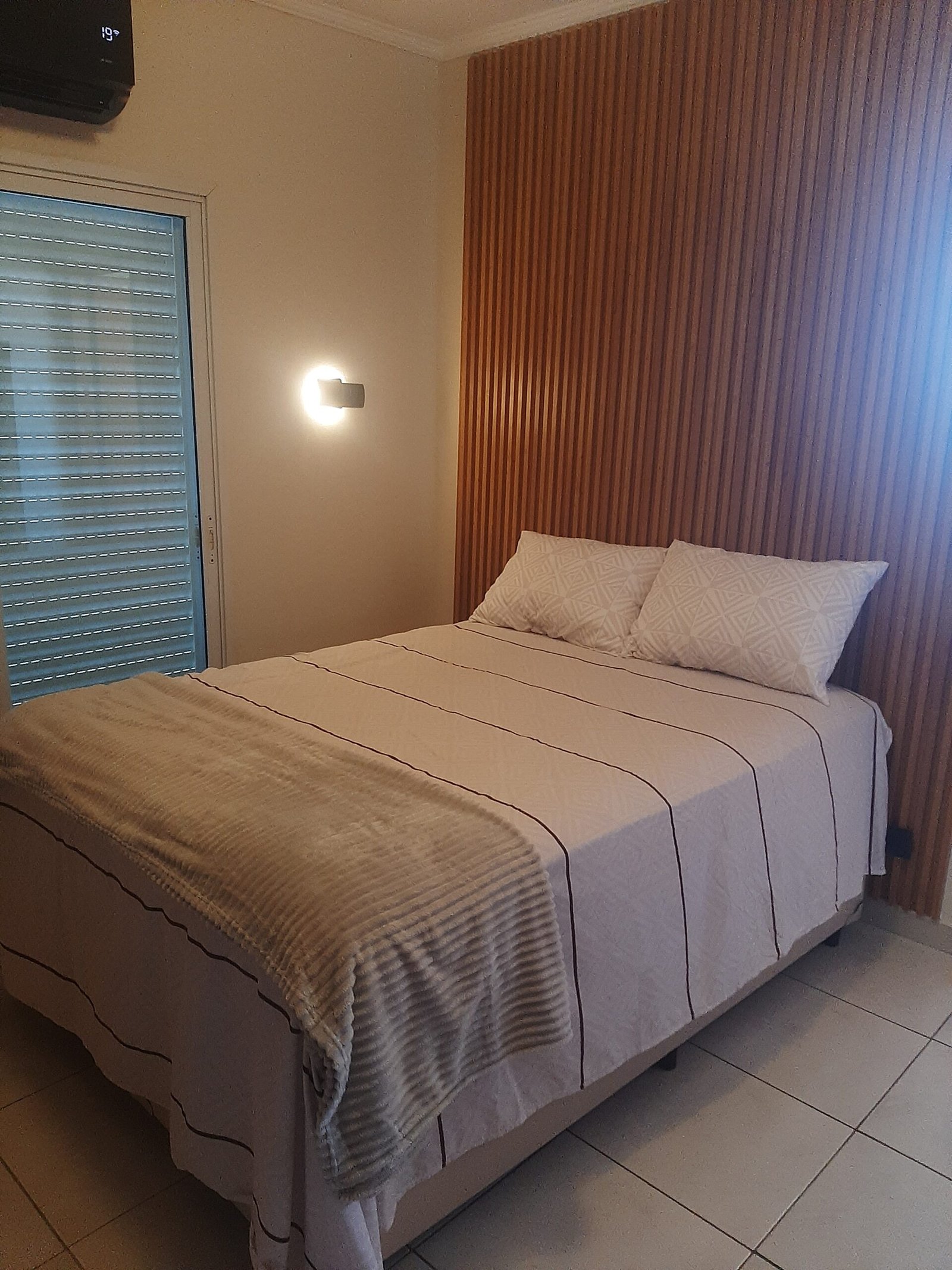 O Apartamento dispõe de 1 quarto (suite), com cama de casal e um sofá cama.