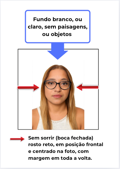 4° Certifique-se de que a foto esteja centralizada, com boa qualidade e sem expressões faciais (sem sorrir).